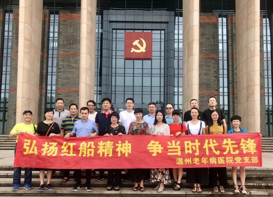 2018年6月23-24日,中国共产党建党97周年前夕,我院党支部组织全体党员赴嘉兴南湖开展主题党日活动。23日下午抵达嘉兴后,党支部书记苏朝辉同志传达了市卫计委党委《关于印发全市卫生计生系统基层党建工作重点任务清单的通知》(温卫党[2018]10号)文件精神,并要求全体党员认真加强政治理论学习,领会习近平新时代中国特色社会主义思想,在此次“弘扬红船精神、争当时代先锋”主题党日活动中,开展“五看五是否”(看政治忠诚,是否牢固树立“四个意识”;看政治定力,是否坚定“四个自信”;看政治担当,是否坚持原则、敢于斗争;看政治能力,是否善于从政治上观察和处理问题;看政治自律,是否严格遵守党的纪律和政治规矩)政治对标行动。24日上午,党支部全体党员参观了嘉兴南湖中共一大会议红船暨革命纪念馆,并在纪念馆誓词墙前再一次面对党旗,庄严地举起右手,重温入党誓词,对党忠诚,积极工作,为共产主义奋斗终身!