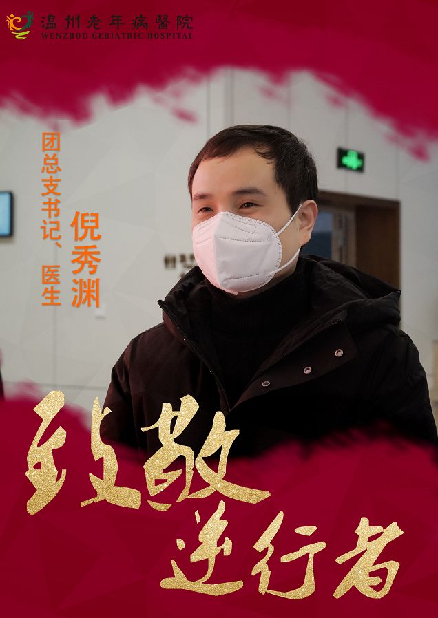 作为我院综合科病区的医生,倪秀渊始终奋斗在医院一线。疫情爆发后,我院快速成立发热预检点,他主动放弃假期,紧急加入抗击疫情的行列,更积极投身全院医护人员疫情防治培训工作中。被问起此行是否紧张时,他说:“不紧张,但是有压力。怕专业能力有限,不能发挥更大的作用。我知道此行工作负荷极大,但我会竭尽全力,尽我所能!用自己的行动践行曾经在党旗前的誓言,肩负使命,义不容辞!”