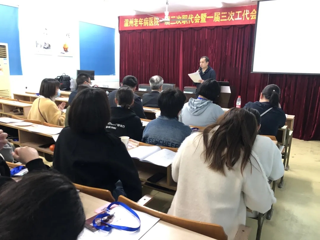 3月21日,温州老年病医院一届三次职代会暨一届三次工代会胜利召开。本次会议应到正式代表38位,实到38位;列席代表27位。
