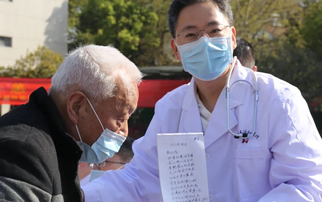 今日上午,他们作为我院援鄂医疗队的一员,在武汉市蔡甸区文化艺术中心广场为武汉市民义诊。