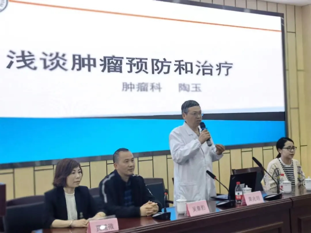 沙龙现场,我院肿瘤科主任医师陶玉以《浅谈肿瘤预防和治疗》的话题切入,全面分析了癌症的预防、早筛、诊断、治疗、康复等5个方面相关知识和注意事项,详细讲解了如何通过三级预防来进行癌症的防控。肿瘤科副主任医师陈后良以《肿瘤会遗传吗?》为话题,与会场康复听众话家常,如何科学防治排担忧。