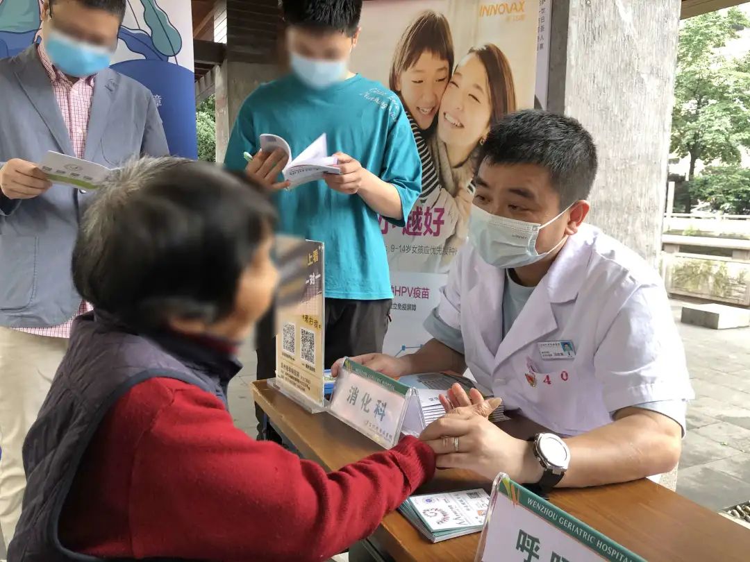 5月14日,在温州老年病医院互联网+医疗运营部的组织安排下,综合内科、血透室、口腔科、消化科等多个科室专家走进鹿城蛟翔社区,开展义诊活动,为社区内老党员送去家门口的医疗服务。