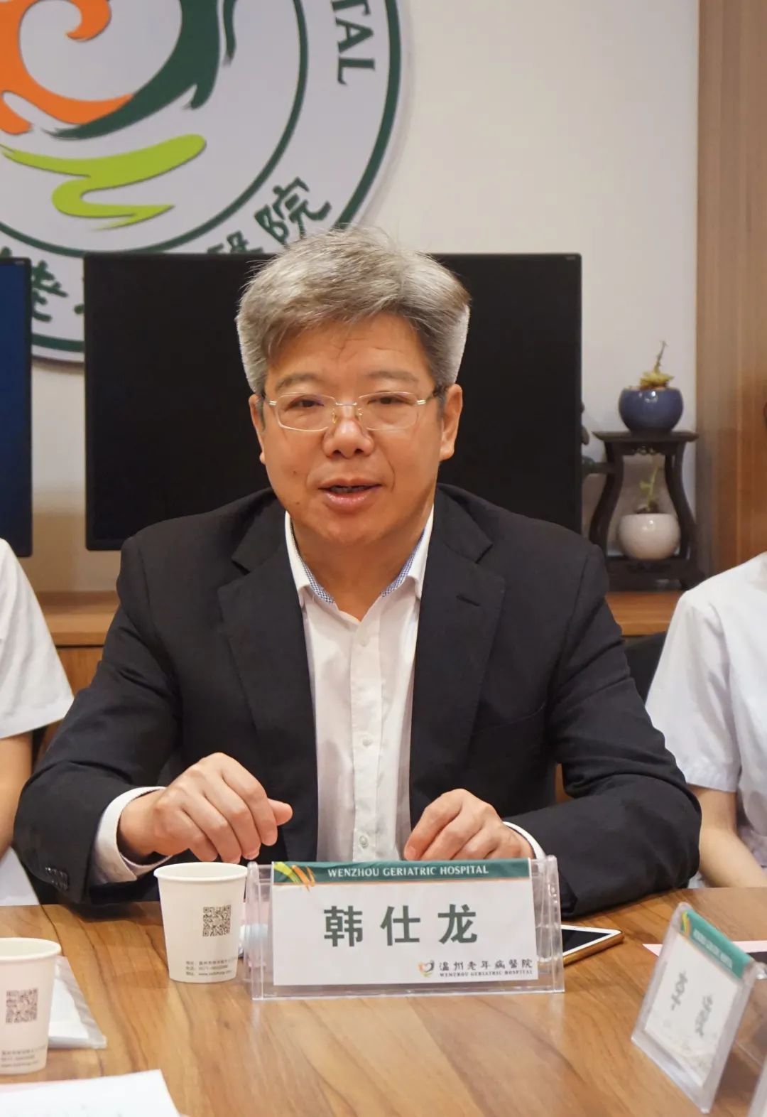 仪式由董事长韩仕龙发言致辞。他在致辞中说到,中国是世界上老年人口数量最多的国家,老龄化速度快,应对人口老龄化任务重。党的十八大以来,习近平总书记作出一系列高瞻远瞩的重要指示,规划部署国家老龄事业发展和养老体系建设。在前行的过程中,我院始终坚持创建具有中医特色的老年病专科医院,血液净化中心是我院重点科室,其业务及护理水平均在省内名列前茅。血液净化护理专科基地的顺利开班,离不开复星医疗集团对我院血液净化护理专科基地的大力支持,对我院整体向上发展具有重要意义。此外,我院热烈欢迎集团兄弟医院的各位学员前来参与培训学习,同时希望大家在未来三个月,能够相互学习,共同提高。