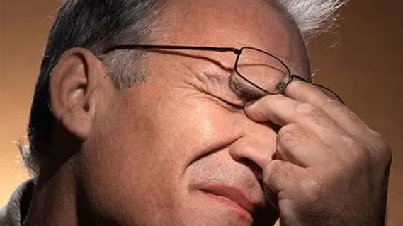 随着年龄的增长,眼睛的晶状体与睫状肌的调节能力下降可导致老花眼。老花眼的初期症状包括远近调节有时间差;近距离工作眼睛易疲倦、不想看小字,严重时甚至头痛、恶心等,最后近距离视物不清,必须把物体拉远才看得清楚。