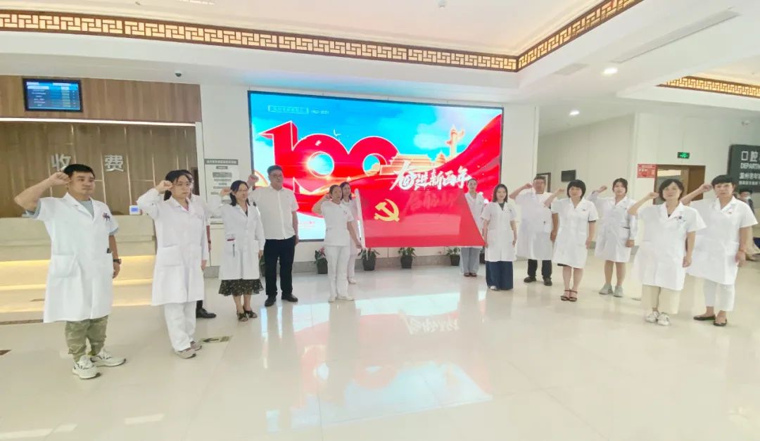 为迎接建党100周年,6月30日,在鲜红的党旗前,我院全体党员列队肃立,举起右手做出庄重承诺,大家一同重温了对党忠诚、积极工作,为党的事业奋斗终身的铮铮誓言,共同学习党员的责任与使命,感受身为党员的荣耀。