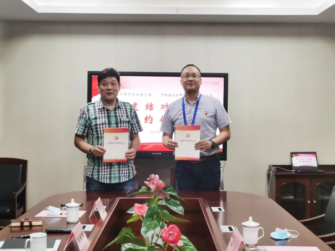 为全面落实《关于加强民营医院党建工作的指导意见(试行)》要求,根据市卫健委统一部署,温州老年病医院与温州市中医院开展党建结对共建工作。2021年7月20日下午,双方党建结对共建签约仪式在市中医院举行,市中医院党委委员、副院长赵永强,党政综合办主任秦雷霆,组织科科长严沁及温州老年病医院执行院长李凌,党支部书记、副院长苏朝辉,院长助理林洁等出席会议。