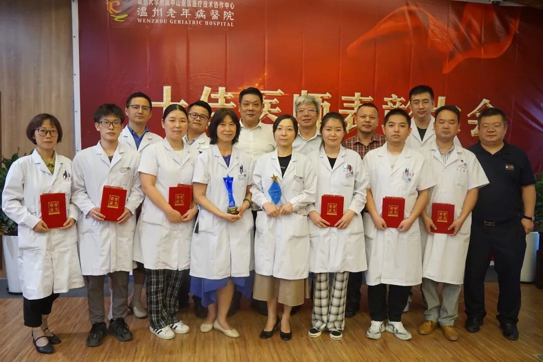 与此同时,本次大会还为两名在复星医疗集团民星医生评选中斩获殊荣的医务人员给予了肯定嘉奖。我院心内科主任医师张云霞获“复星医疗集团民星学科带头人”称号,肿瘤科主任医师陶玉获“复星医疗集团民星医生”称号,董事长韩仕龙为两位医师颁发奖杯。