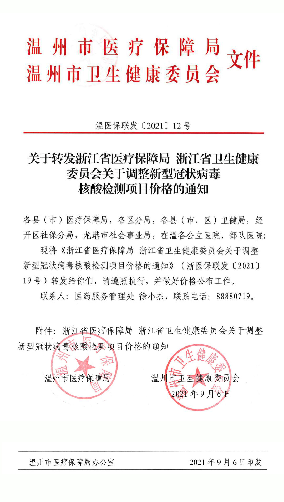 关于调整新型冠状病毒核酸检测项目价格的通知