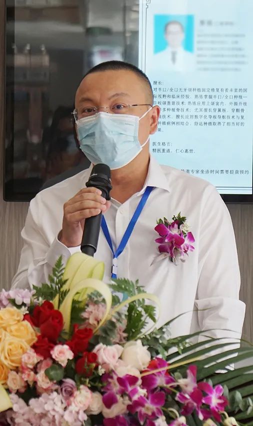 复星医疗集团副总裁陆炜青先生上台致辞。他说,长期以来,复星健康始终以“持续创新,乐享健康”为品牌理念,致力于成为全球主流医疗健康市场的一流企业,目前已经是中国领先、创新驱动的国际化医药健康产业集团。温州老年病医院是复星健康战略布局的重要组成之一,此次与鼎植学科共建而来的口腔科顺利开业,相信双方合作交流的深化必将全面带动医院整体医疗水平的提升,为温州市百姓的口腔健康保驾护航。