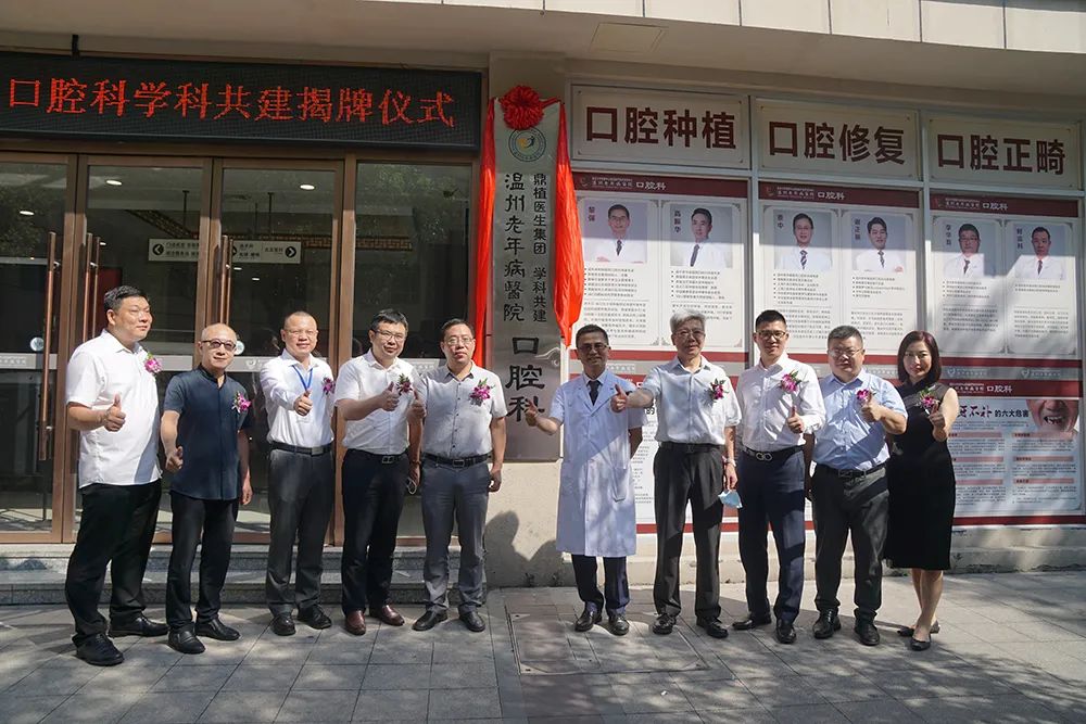 为进一步提高我院口腔医学诊疗水平,给周边居民带去更好的口腔医疗服务,9月24日上午,温州老年病医院口腔科与鼎植医生集团学科共建揭牌仪式在我院门诊大楼举行。复星医疗集团副总裁陆炜青,复星健康高级投资总监阮维哲,鼎植医生集团董事长、总裁黎强,鼎植医生集团副总裁黄小亮,鼎植医生集团助理总裁徐方玲,温州老年病医院董事长韩仕龙,温州老年病医院执行院长李凌携院领导班子共同出席了本次揭牌仪式。