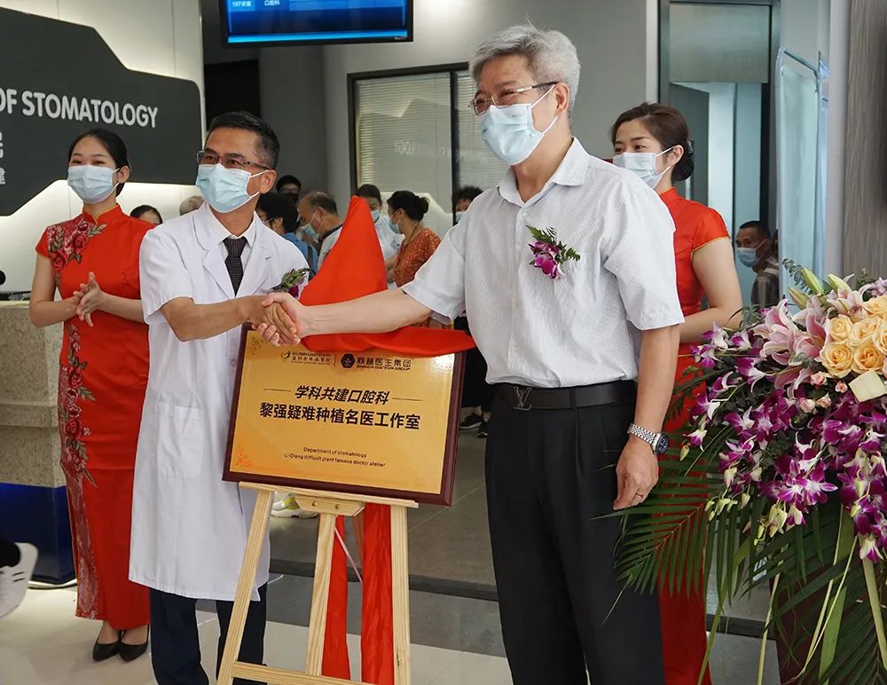 随后,参与本次揭牌仪式的领导及嘉宾在大家的共同见证下为温州老年病医院口腔科及“黎强疑难种植名医工作室”举行隆重的揭牌仪式。