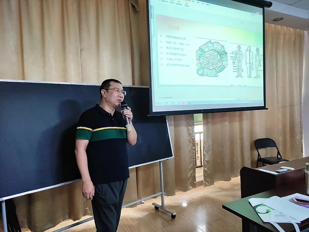 在第一节课中,郑主任以通俗易懂的语言、生动的事例,图文并茂地为学员们讲解了中医经络穴位排列的基础理论知识。学员们认真记录、积极举手参与课堂互动,课后围着郑主任答疑解惑,课堂氛围十分热烈。