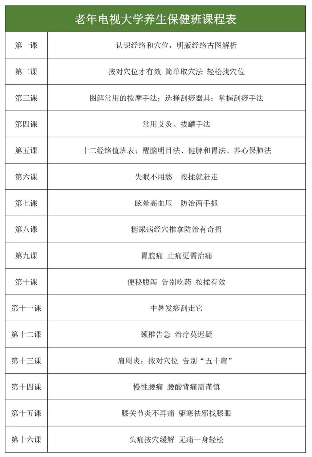 老年大保健课程一览
