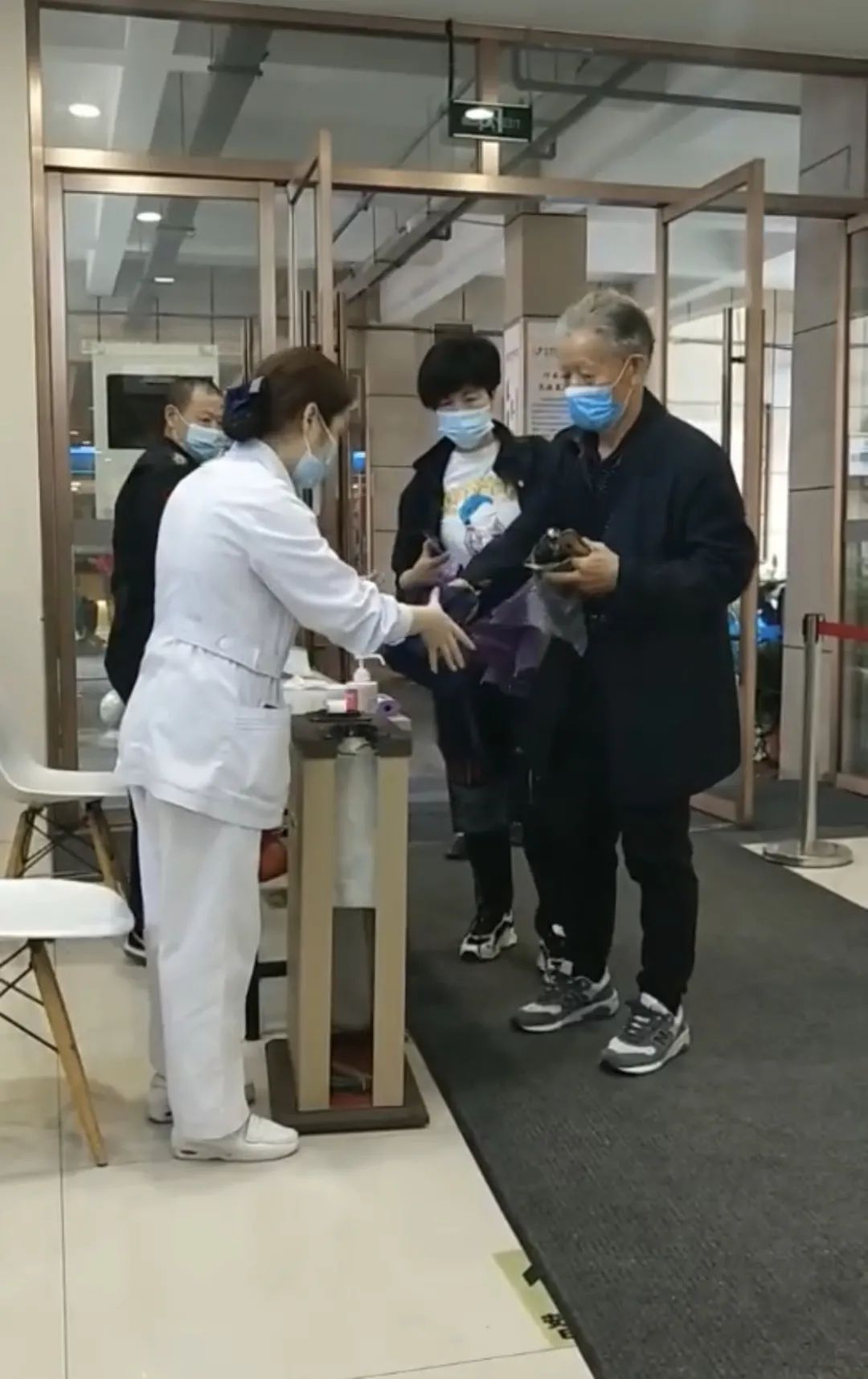 老人腿脚不便,门诊部一楼同事主动搀扶患者前往二楼诊室看诊