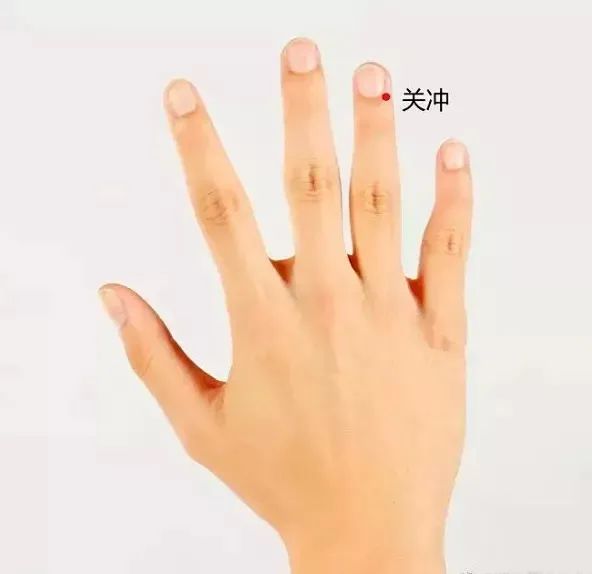 关冲穴位于手环指(无名指)尺侧端,距指甲角旁0.1寸。有醒神开窍、解酒防醉功效。用指甲掐按,每次10秒,放松2秒后重复,每侧手指掐按5次。用力要均匀,使穴位能感到微微酸痛为宜,这样可以缓解喝酒之后引起的不适。