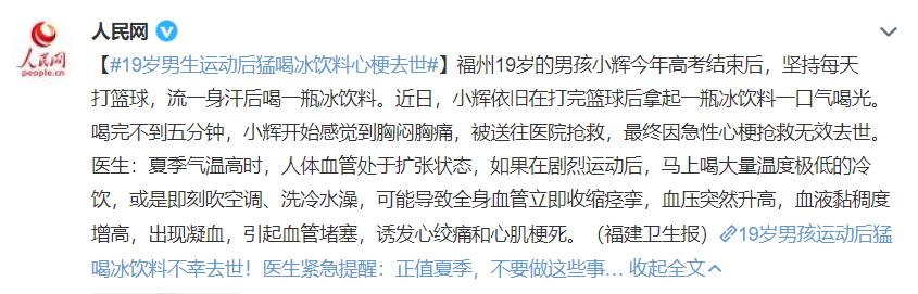 在正常情况下,夏天的心梗发作率会明显下降,但是遇上一些“极端”操作,比如喝大量的冷饮,也会增加突发心梗的概率。小辉猝死的新闻在叫人痛心的同时,也给心血管疾病患者敲响了警钟。