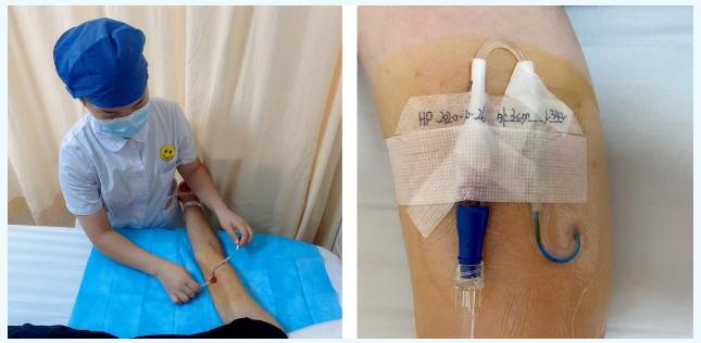 ▲用药结束后可轻轻按摩穿刺肢体的末梢血管,做手部伸握动作、局部热敷(避开穿刺部位),以增加血液循环及血管弹性、降低脆性;