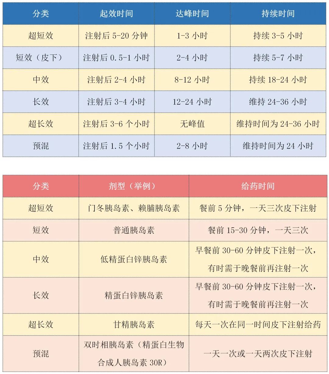 胰岛素注射剂按作用时间分类