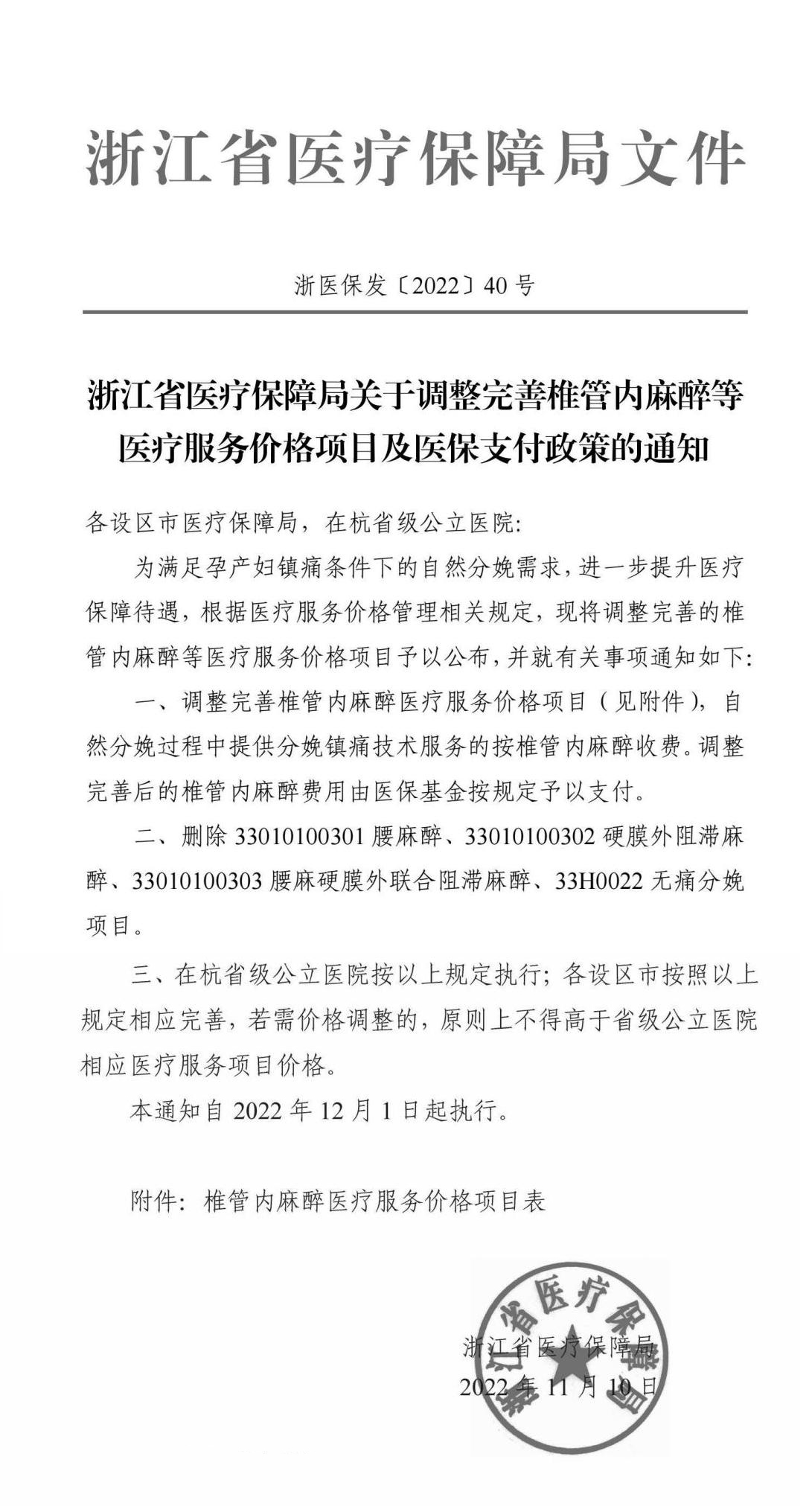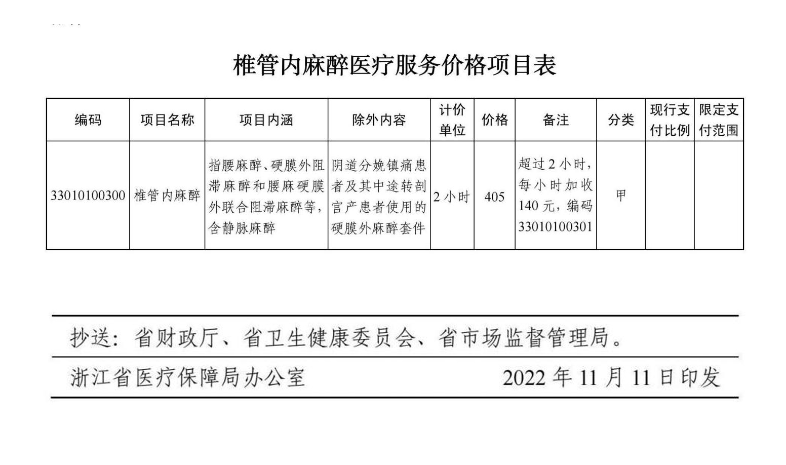 关于调整完善椎管内麻醉等医疗服务价格项目及医保支付政策的通知