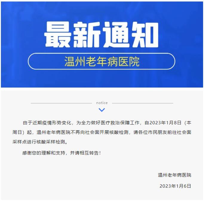 关于温州老年病医院暂停社会面核酸检测服务的通知