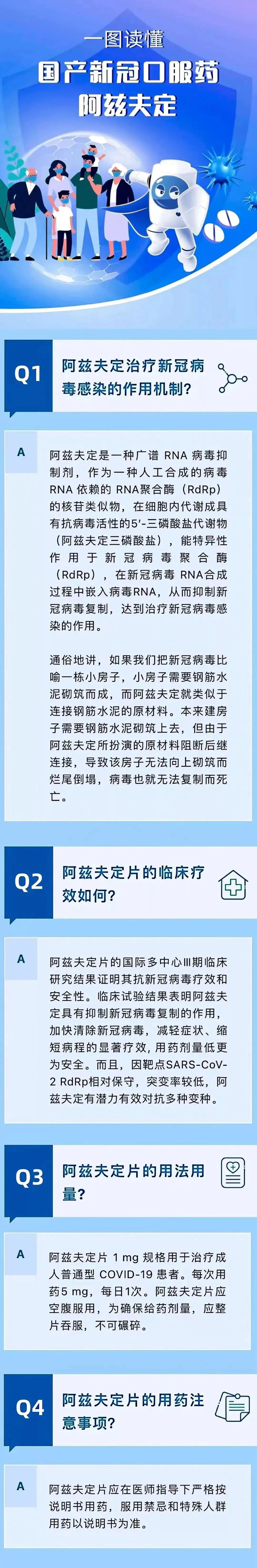 为进一步方便新冠病毒感染轻症患者就医购药,降低轻症转重症的风险,即日起,我院可为有需求的市民朋友们开具国产新冠口服药「阿兹夫定」,每人限开一瓶,数量有限,先到先得。具体请就诊后遵医嘱用药。