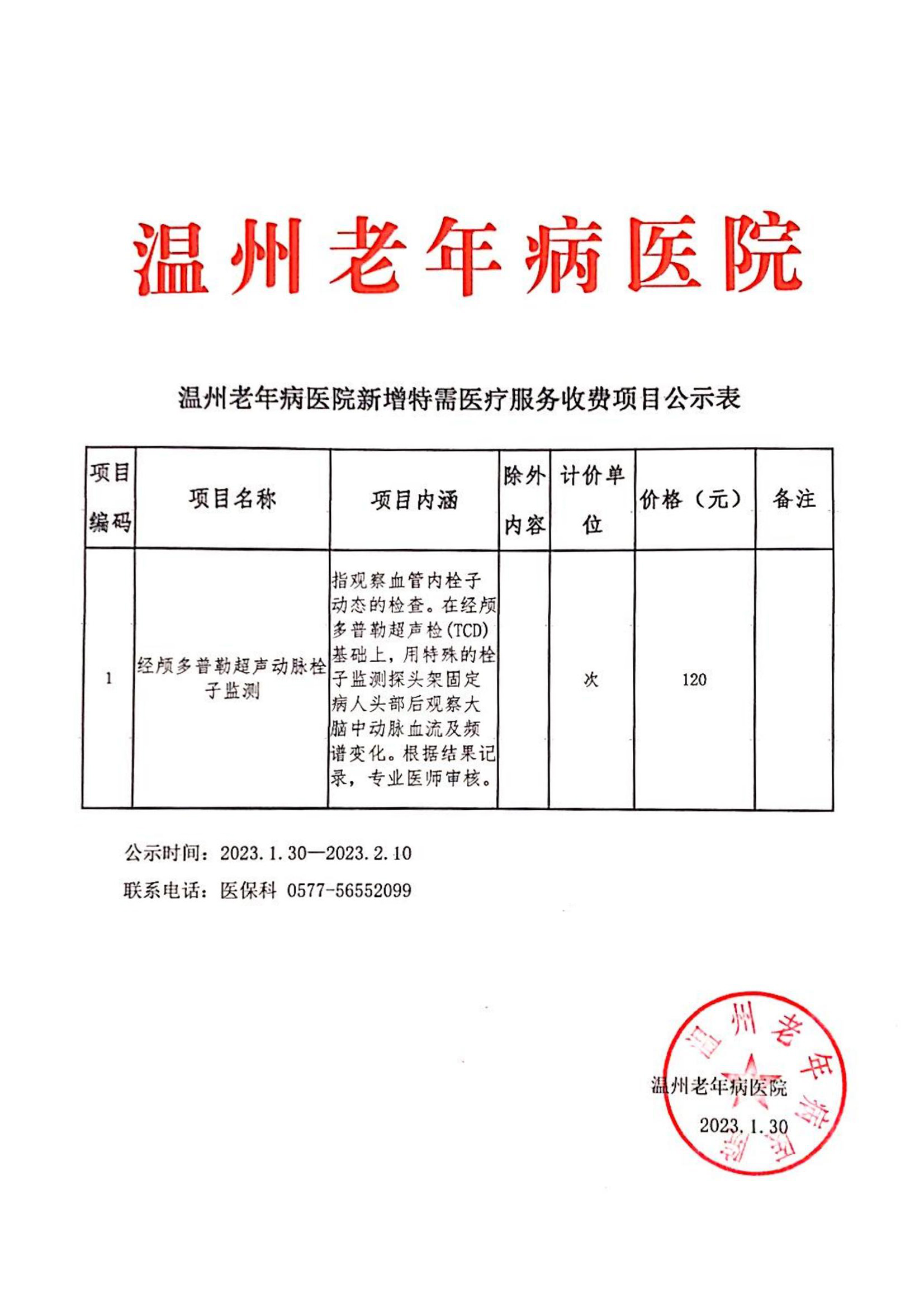 温州老年病医院新增特需医疗服务收费项目公示表