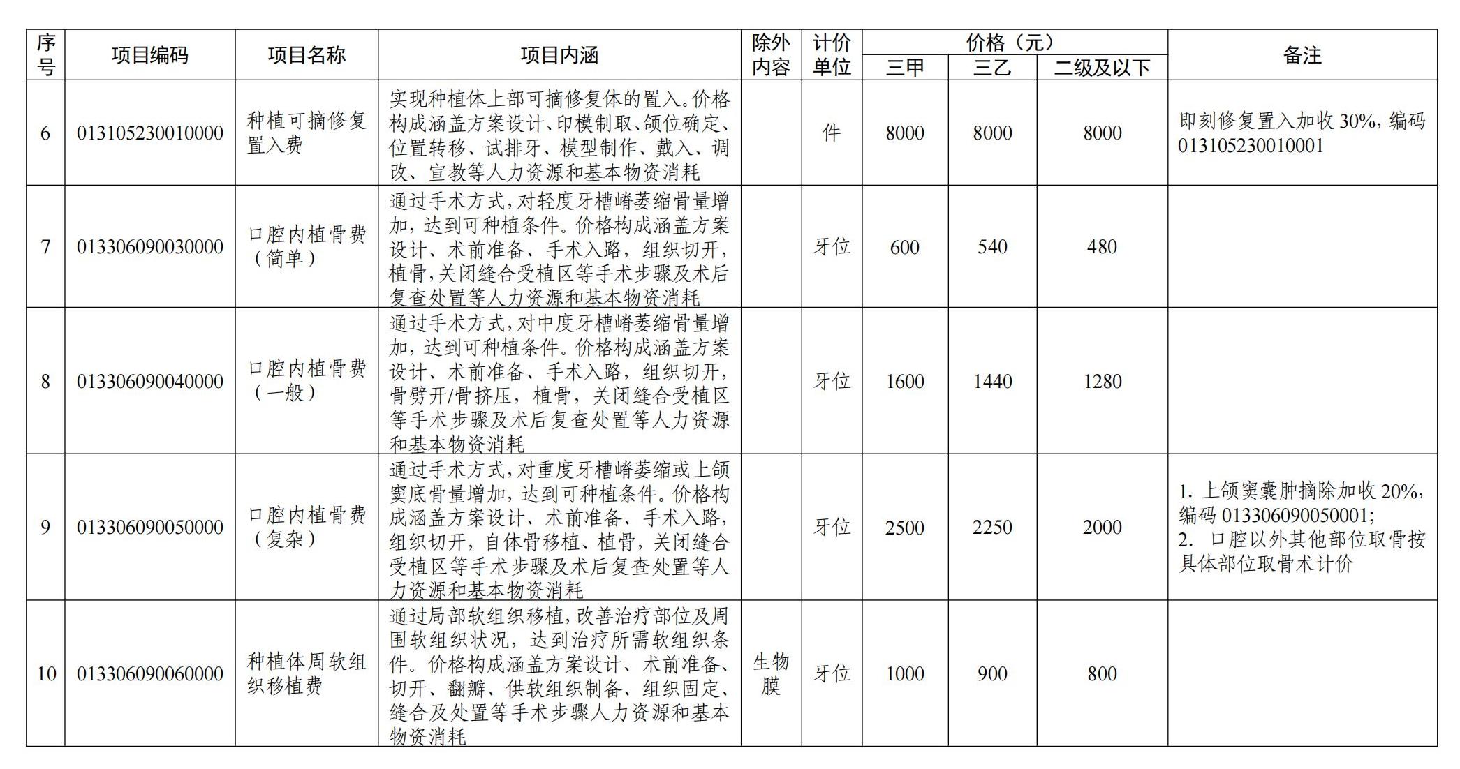 温州市医疗保障局关于规范口腔种植等医疗服务价格项目的通知