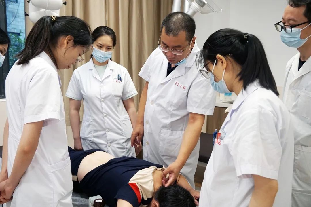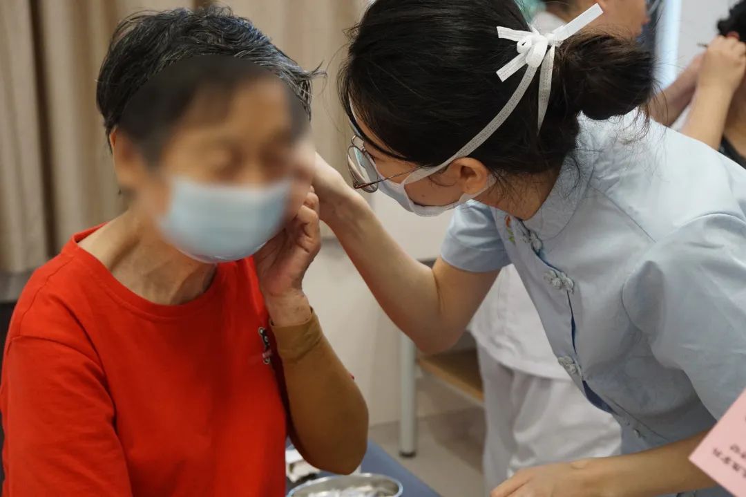 在诊疗同时,一场精彩的“师带徒”课堂亦同步展开,3位主任医师耐心为学生们讲解、实操,手把手进行传授教导。青年医生们则紧紧把握这次难得的学习机会,在老师的指导下巧施银针,为参与义诊的患者解决病痛困扰。