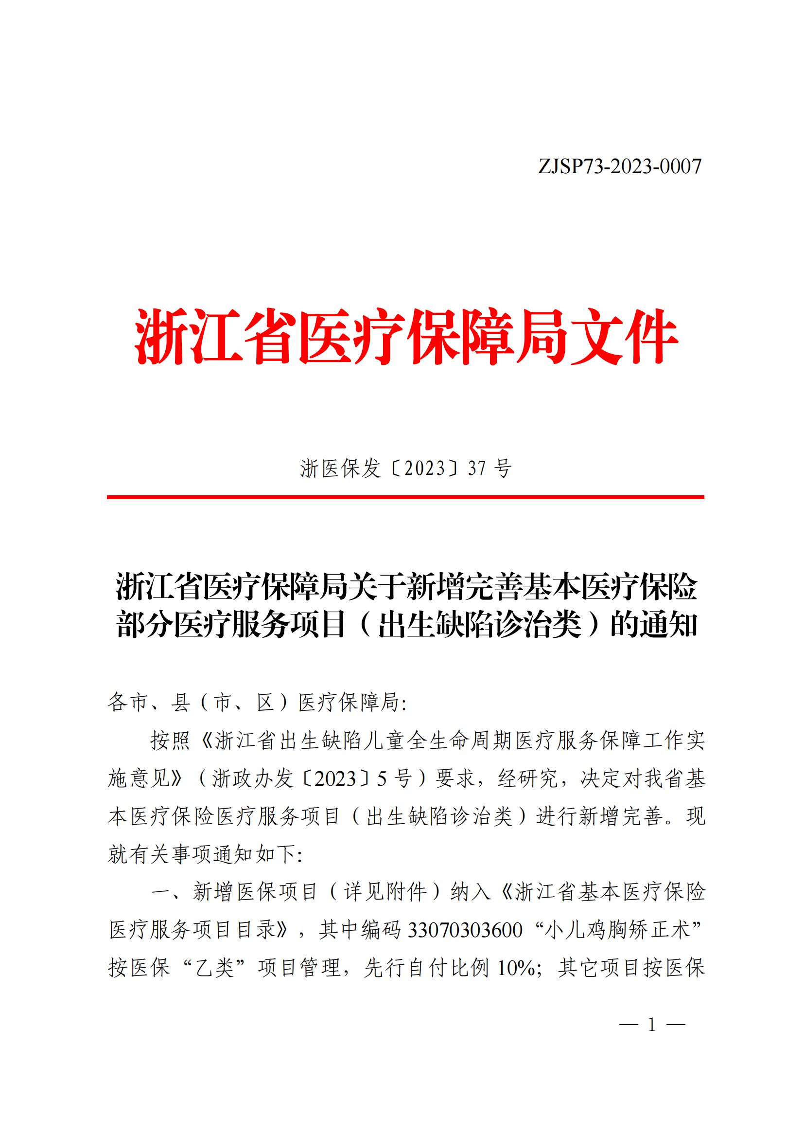 浙江省医疗保障局关于新增完善基本医疗保险部分医疗服务项目(出生缺陷诊治类)的通知