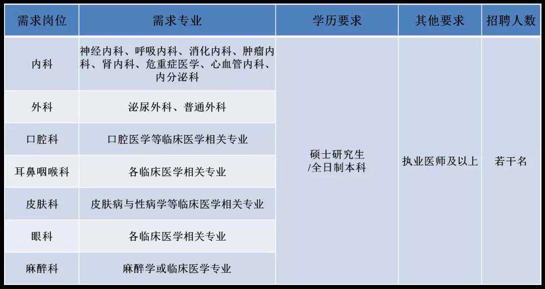 招聘对象:临床各学科全日制硕、博士研究生,享受医院人才引进政策,硕士研究生一次性安家补贴最高10万元,博士研究生一次性安家补贴最高20万元