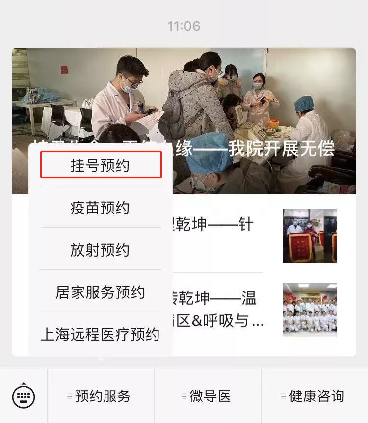 ● (2)微信预约:关注公众号-温州老年病医院,点击预约服务-挂号预约-选择科室-选择医师-选择日期、时间点,进行预约。