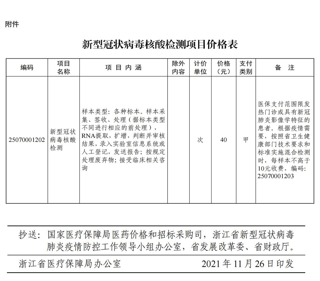 关于进一步降低新型冠状病毒核酸检测项目价格的通知