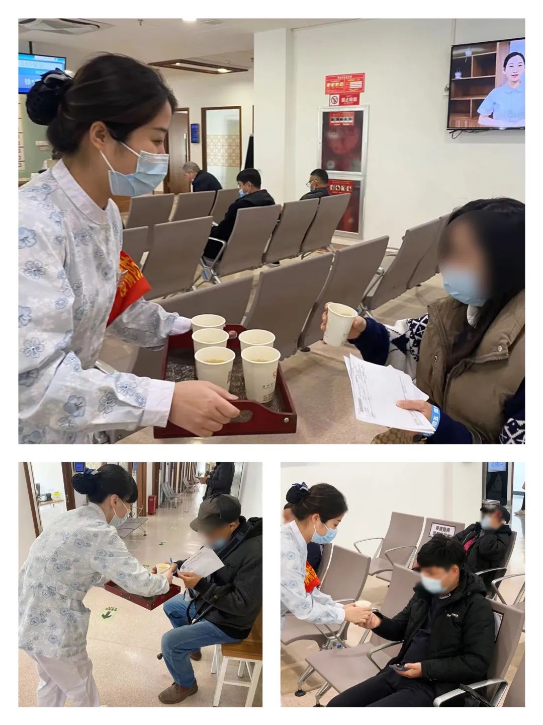 ▲门诊部导医为患者送上爱心茶