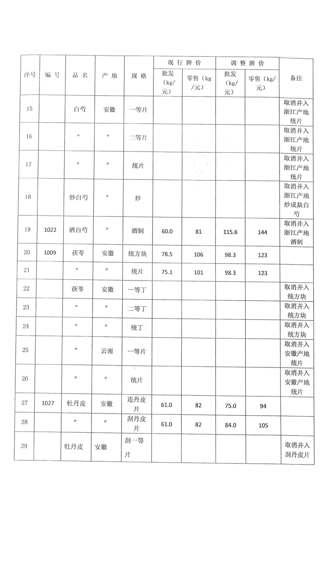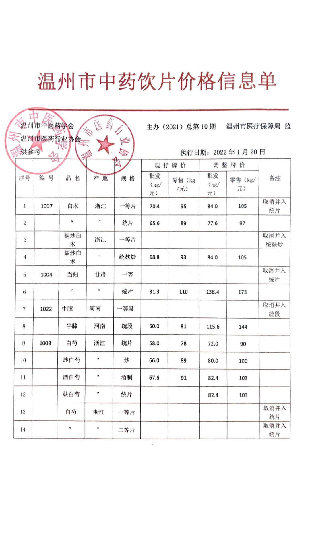 温州市中药饮片价格信息单(总第10期补充信息)