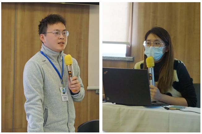 ▲董飞侠、张胜靖代表通讯员队伍发言