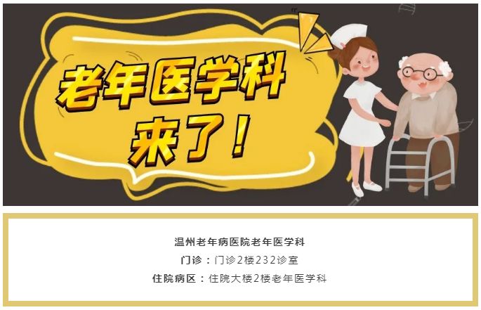 老年医学科是温州老年病医院重点学科。是一个运用老年综合评估与多学科团队管理技术系统开展老年人全生命周期管理的科室。科室秉承“细心、耐心、关心、爱心、热心“的服务理念,给老年朋友提供温馨舒适的就医环境。与传统科室不同的是,老年医学科落实“西医诊病、中医辨证”的中西医结合方针,实行中西医互补,是集诊断、治疗、预防保健、康复养生为一体的老年性疾病临床诊疗中心。