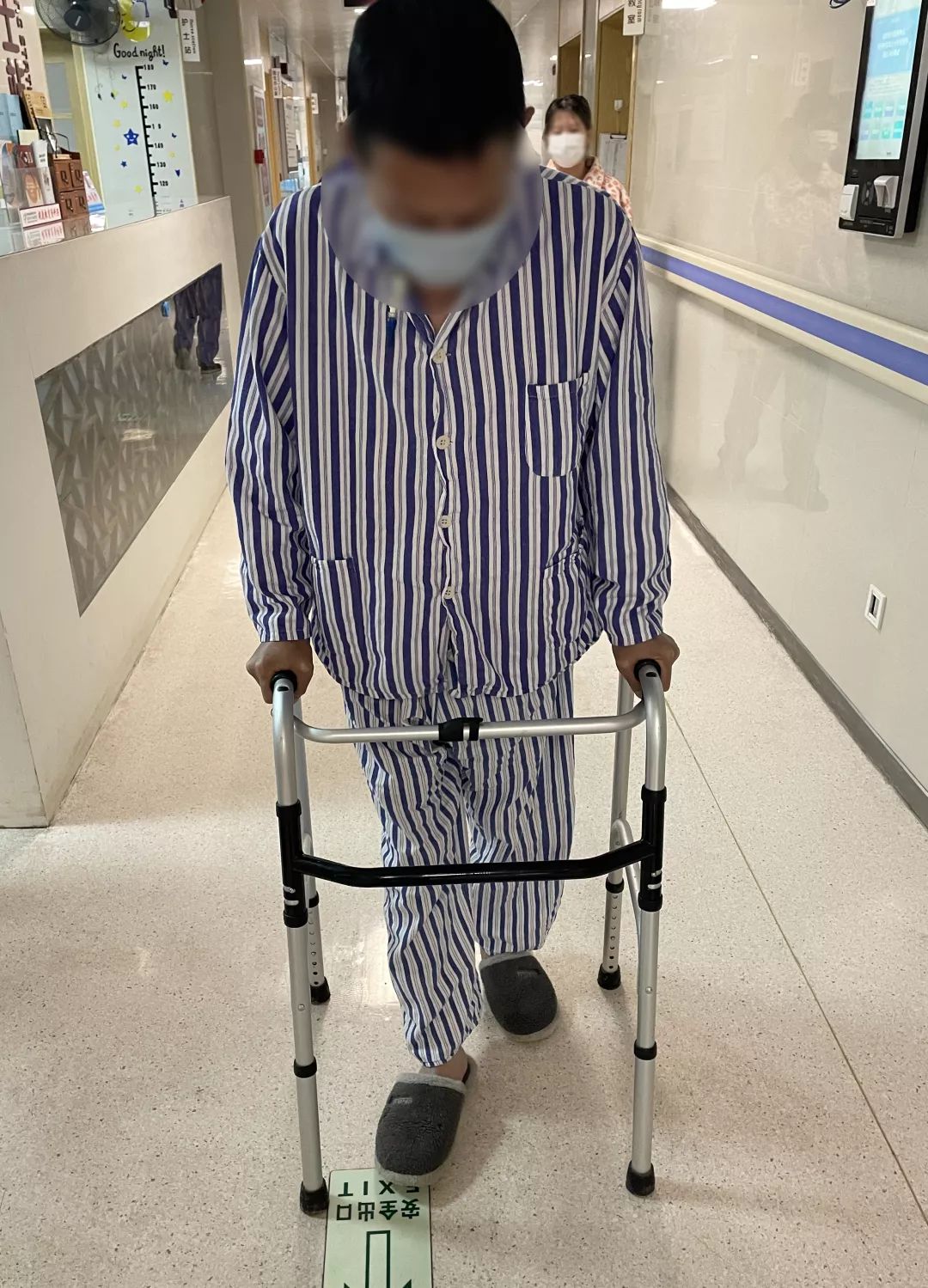 经过约6周的术后康复,林先生再次入院,骨外科团队为其行左全髋关节置换术。因长期病痛,他的双下肢不等长,我院团队在术前做了大量功课——包括对假体选择、截骨多少及假体安放的位置等,均进行了充分考量,并圆满地为患者完成了两侧全髋关节置换。现通过本次术后的康复护理,患者已可借助助行器下地行走。