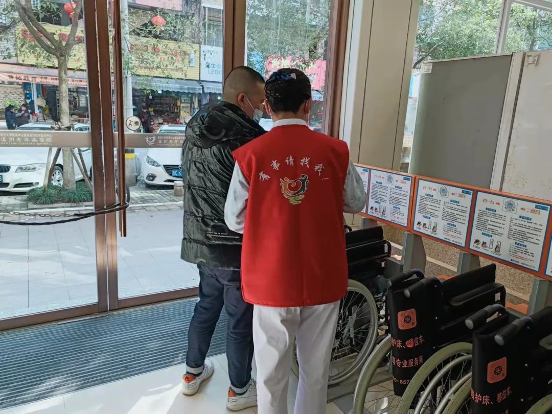 ▲志愿者为患者提供引导服务