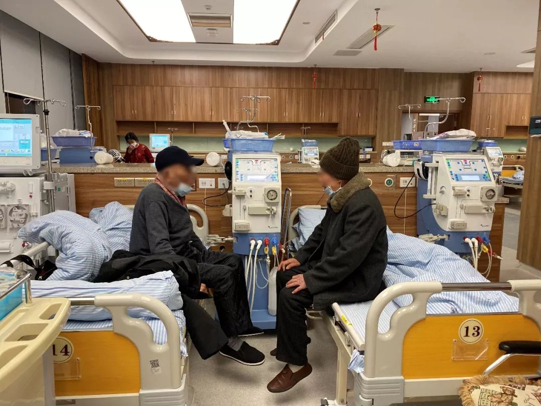 时间来到今年2月14日,在我院血液净化中心医护人员的协助下,失散三十年的老友终于相聚,两位老人在透析结束后促膝长谈,阔别三十年再相遇,两人都有聊不完的话。两位老友的重逢,也让他们的家属喜出望外。家属感谢我院血液净化中心医护人员们的悉心照顾,如果不是他们的细心与倾听,也就不会有两位老者的意外重逢。
