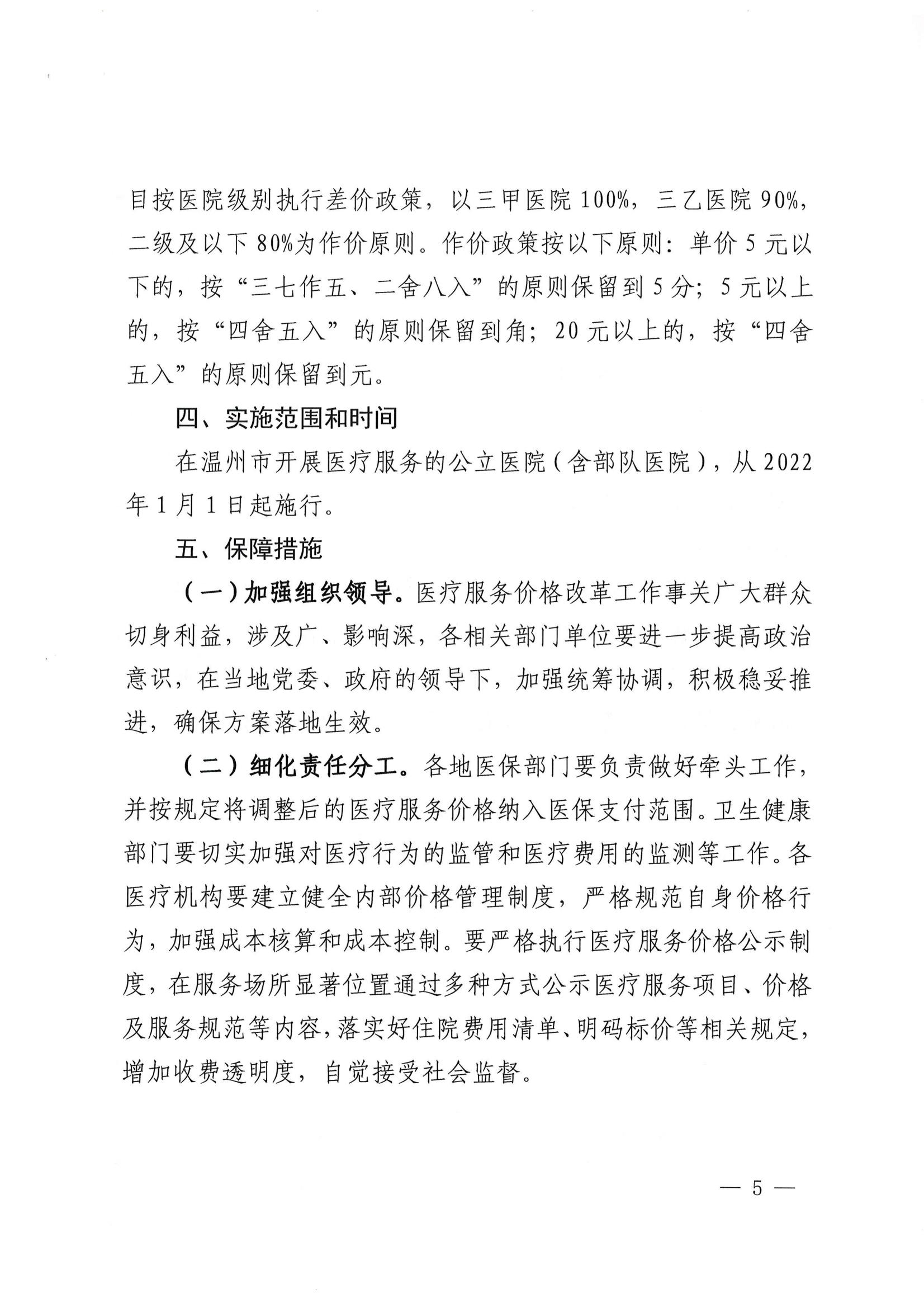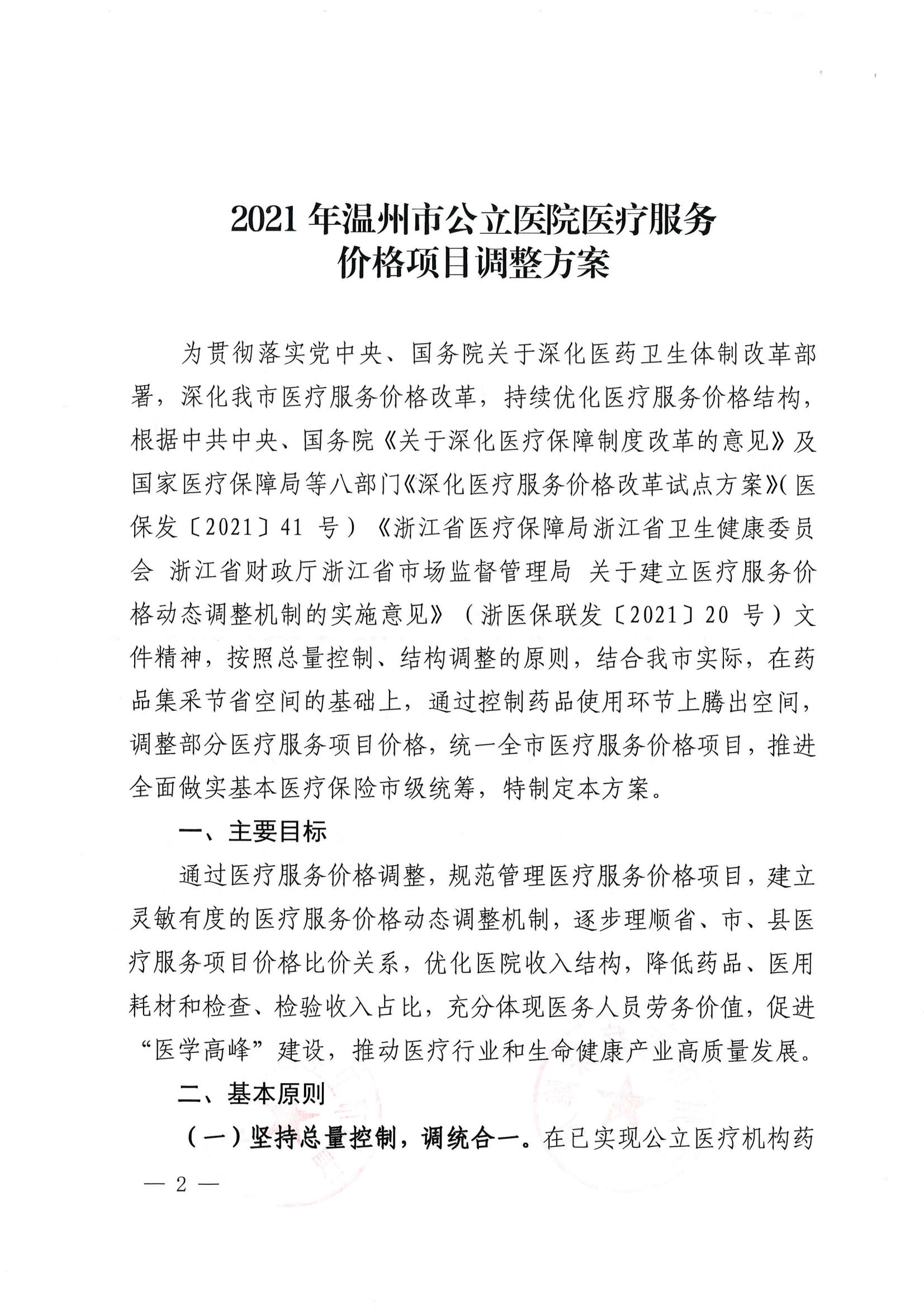 关于印发《2021年温州市公立医院医疗服务价格项目调整方案》的通知