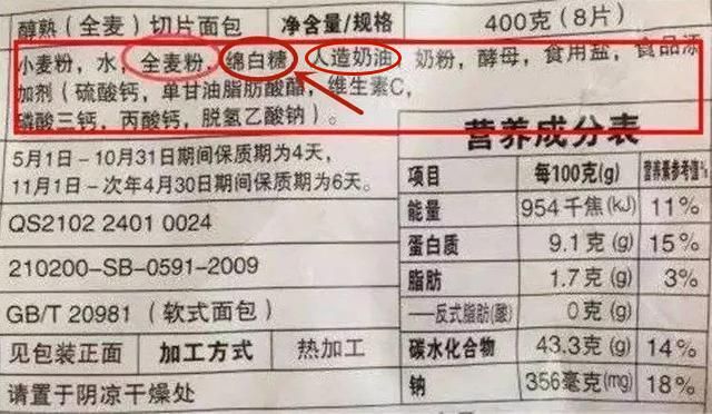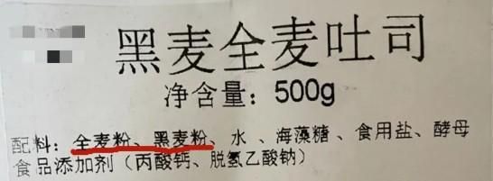 以我们熟悉的全麦面包为例,全麦面包,顾名思义,它的配料表第一位一定得是全麦面粉,才能称得上是全麦面包。