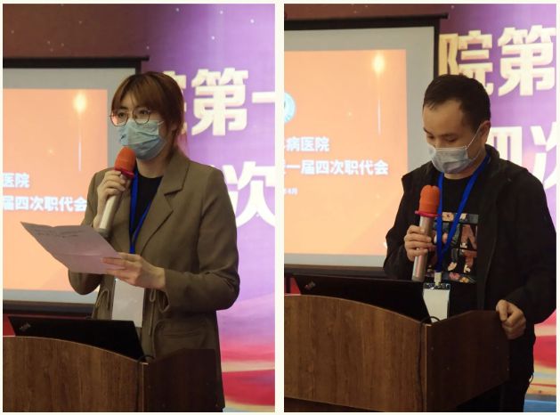 工会主席苏朝辉作《2021年医院工会工作报告》。2021年我院工会工作以全面贯彻习近平新时代中国特色社会主义思想为引领,在市总工会、市卫健委和复星医疗集团的领导下,围绕医院中心工作,团结动员广大职工,锐意进取、积极作为,充分发挥工会的维护、监督和参与职能,为确保医院各项工作目标的实现做了细致有效的工作。新的一年,工会将继续以党建带工建,充分发挥党政与群众沟通的桥梁作用,大力宣扬“工匠精神”,以服务职工为理念,着力为职工解难题、办实事,引领广大职工积极推进医院高质量发展,谱写新时代温州老年病医院工会工作新篇章。
