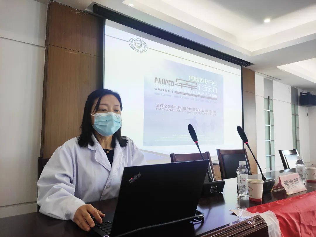 在活动现场,陶玉主任为大家作了“癌症早防早筛,我们一起行动”的科普讲座,告诉大家三分之一的癌症可以预防,三分之一的癌症可以早期发现、早期诊断、早期治疗,能够获得治愈机会。并告诉大家癌症三级预防的概念,一级预防就是病因预防,针对致癌因素、危险因素采取针对性的措施从根本上预防癌症的发生;二级预防就是三早预防,早发现、早诊断、早治疗;三级预防就是临床预防,主要包括对症治疗和康复治疗。大家对癌症早防早治有了更充分的认识。