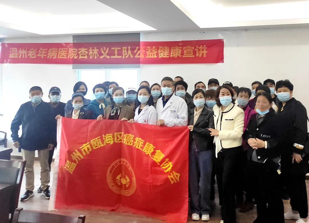受温州市瓯海区癌症康复协会的邀请,2022年4月18日下午,我院肿瘤科黄兆明肿瘤团队走进社区,为社区群众宣讲科学防癌理念。