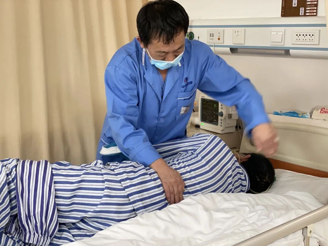 与此同时,神经内科与康复科联合研讨,共同制定了中西医结合治疗方法,在改善呼吸方面,采用平衡功能训练、吞咽功能障碍训练、呼吸肌训练、有氧训练等;在治疗脑梗偏瘫方面,采用关节松动训练、电动起立床训练等,根据患者的健康状况,不断调整训练强度。