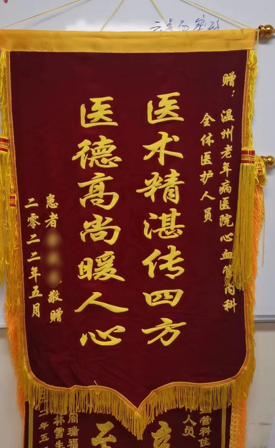经过静心调养,现患者已病情好转出院。我院心血管内科专业的诊疗技术及优质护理得到了患者及家属的高度认可,为心内科全体医护送上感谢锦旗。这面锦旗不仅拉近了医护人员与患者的距离,也时刻鼓舞温暖着我们。