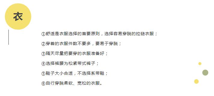 鞋子不要选择系鞋带的,尽量选择魔术贴的,且鞋底避免橡胶或生胶底,以防患者向前跌倒。力争让患者自己穿脱衣物鞋袜,从而锻炼肌肉及协调性。