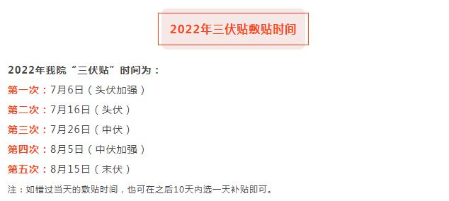 温州老年病医院2022年“冬病夏治”三伏贴为自费项目,详情请咨询:15990702016(咨询时间:每周一至周五上午8:00-12:00,下午14:00-17:00)