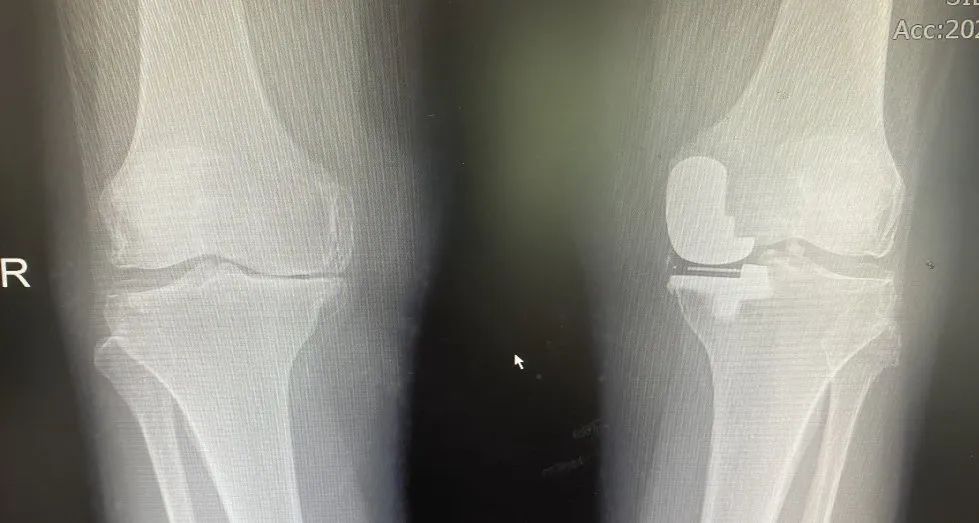 后经人介绍,刘奶奶在我院经相关检查后,行左膝单髁关节置换术,手术非常顺利,术后恢复良好,左膝关节无疼痛,活动自如。近两月,患者右膝关节的旧疾疼痛加重,复查发现这又是右膝内翻畸形带来的“烦恼”。于是便在我院再行右膝单髁关节置换术。现术后双膝关节活动自如,行走无碍。困扰了刘奶奶20多年的“老毛病”至此终于告一段落!