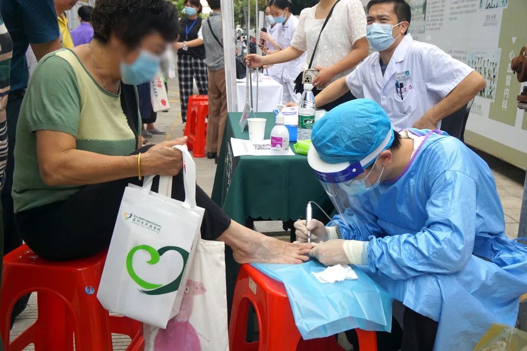 ▲耳穴埋豆、病甲处理、免费体检等项目深受群众喜爱